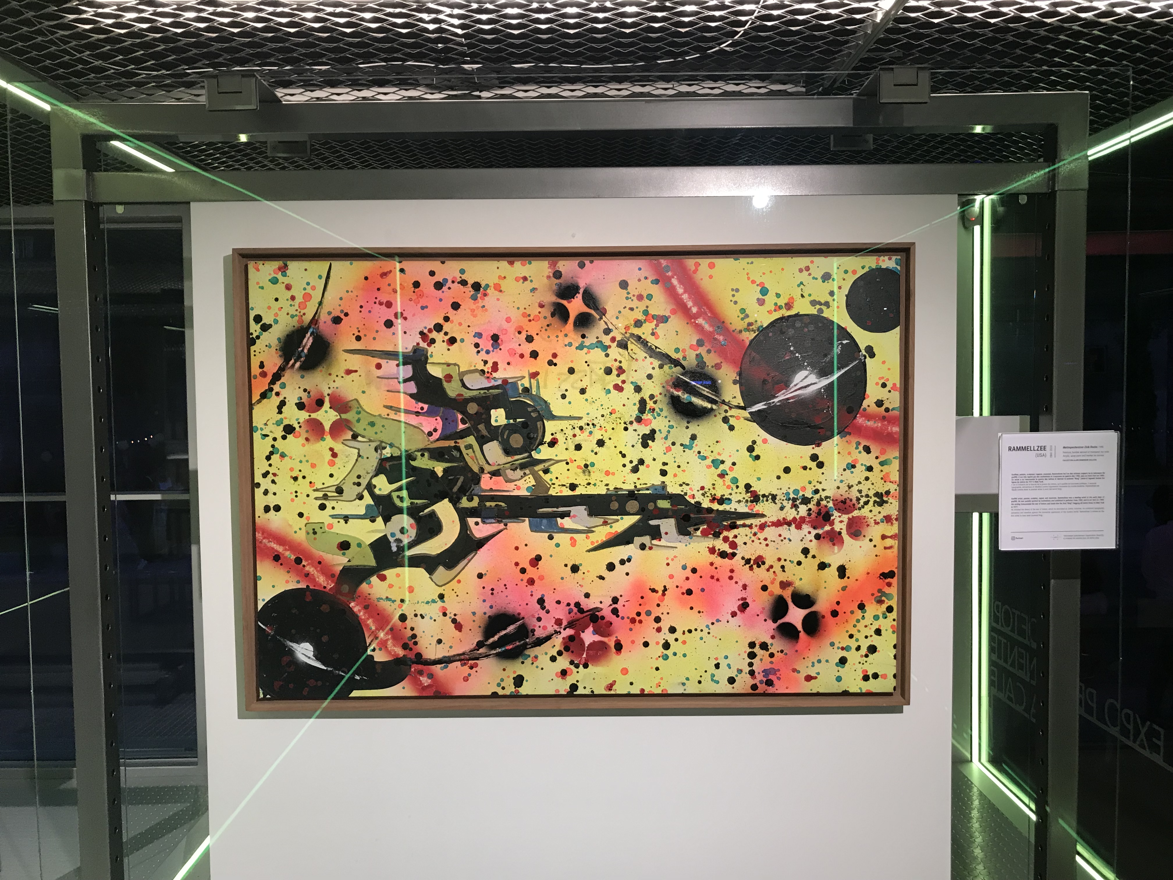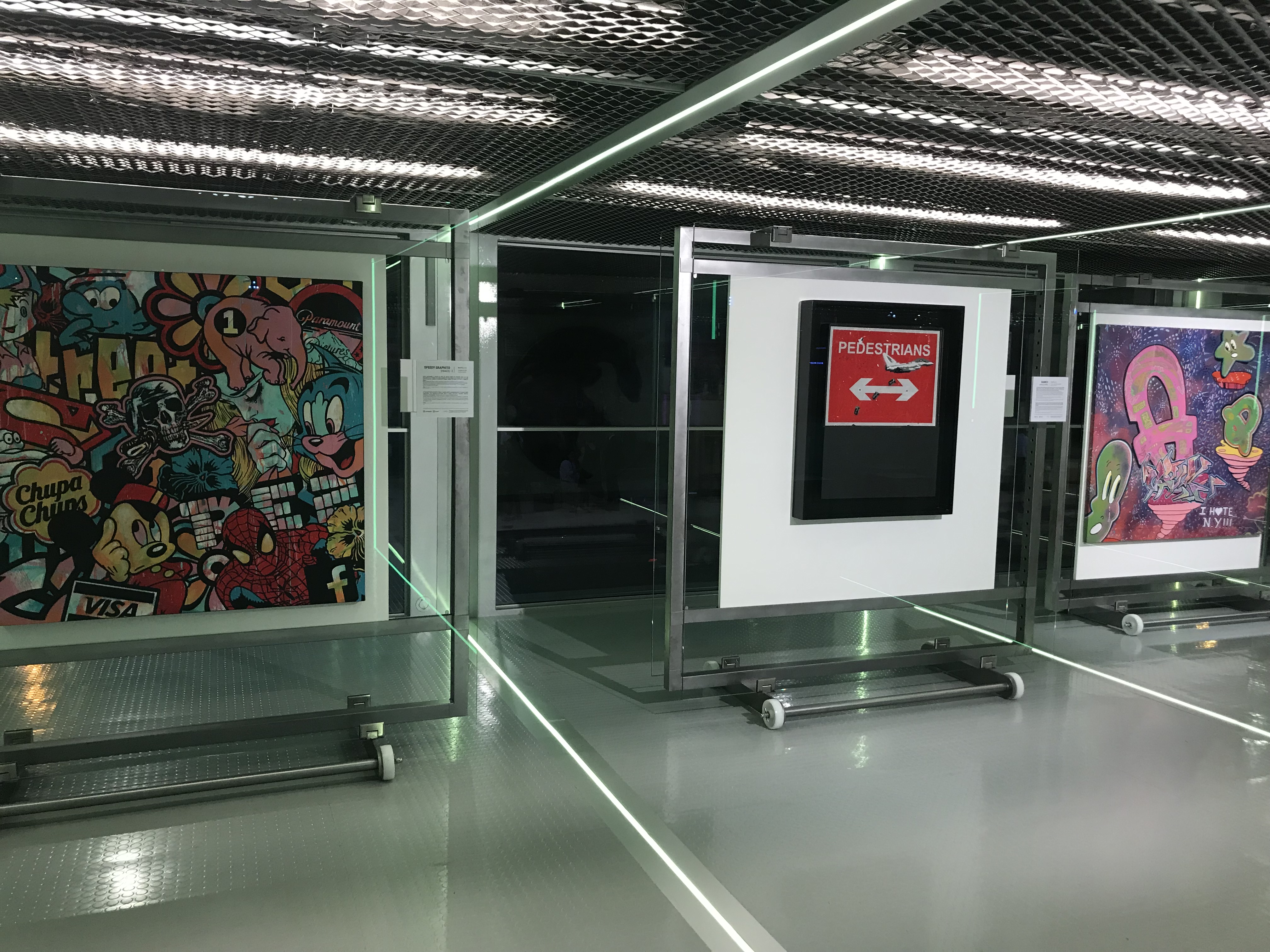 La cale est réservée aux expositions temporaires axées toujours sur les thématiques du streetart. Lors de ma visite c’était l’exposition itinérante de l’artiste Swoon, traçant son parcours et ses évolutions techniques : une exposition intrigante et émouvante. Sur le pont dans un espace modulable, marquant par ses matériaux modernes tout en transparence, on retrouve l’exposition permanente qui retrace l’histoire du streetart avec des documents et des œuvres emblématiques de l’art urbain ( par exemple des œuvres de : Banksy, RammelZee, Roa, Rero…). Sur la terrasse ,nous retrouvons un bar et un coin food avec un espace pour organiser des concerts ou autres événements.